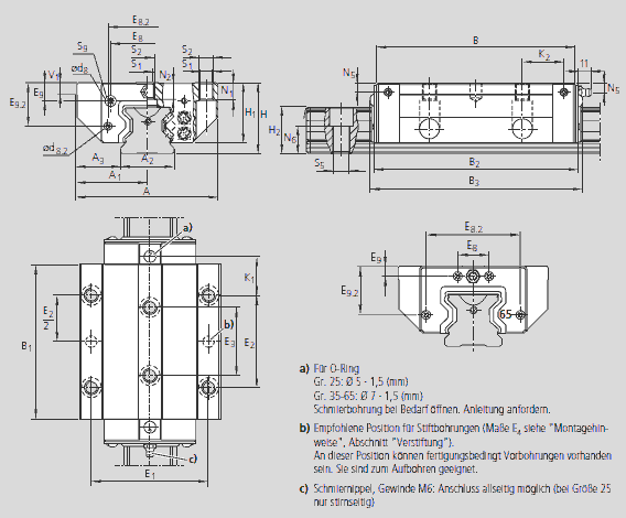 博世力士樂滾柱導(dǎo)軌導(dǎo)向系統(tǒng)是結(jié)構(gòu)緊湊的滾柱承載的線性導(dǎo)向產(chǎn)品,具有極高的承載能力和剛度。滾柱導(dǎo)軌導(dǎo)向系統(tǒng)規(guī)格范圍涵蓋25到125,應(yīng)用場(chǎng)合非常廣泛,包括機(jī)床、印刷機(jī)械、造紙機(jī)、噴涂裝置、工業(yè)機(jī)器人、壓機(jī)和重型機(jī)械設(shè)備等。優(yōu)勢(shì):1,4個(gè)主要承載方向上極高的負(fù)載能力.2,高轉(zhuǎn)矩承載能力.3,優(yōu)化的滾柱循環(huán)系統(tǒng)和導(dǎo)向元件設(shè)計(jì)實(shí)現(xiàn)了平穩(wěn)、安靜的運(yùn)行.4,標(biāo)配端部密封.5,優(yōu)化的潤滑通道設(shè)計(jì)大限度減少了潤滑劑消耗.6,所有側(cè)面都有潤滑接口,方便進(jìn)行維護(hù).7,導(dǎo)軌可選配防護(hù)帶,安裝方便.8,可集成感應(yīng)、無磨損測(cè)量系