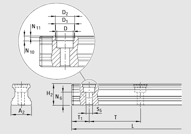 2)對于規(guī)格20-45,精度N,H和P的滾珠導(dǎo)軌,單段供貨長度