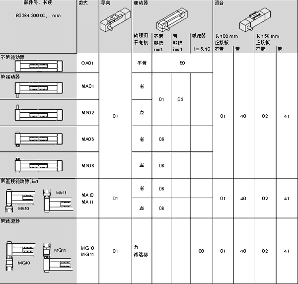 帶滾珠導軌系統(tǒng)和滾珠絲杠的直線運動模塊(MKK):這些模塊使用極為緊湊的鋁型材制造,集成力士樂滾珠導軌系統(tǒng)。使用滾珠絲杠提供驅(qū)動動力。優(yōu)點是高負載能力、定位精度和重復定位精度。帶滾珠導軌系統(tǒng)和齒形帶驅(qū)動裝置的直線運動模塊(MKR):這些模塊使用極為緊湊的鋁型材制造,集成力士樂滾珠導軌系統(tǒng)。齒形帶驅(qū)動裝置提供驅(qū)動動力,可實現(xiàn)5m/s的運行速度。集成的博世力士樂零間隙導軌系統(tǒng)的高負載能力和優(yōu)化的運行特性可以實現(xiàn)負載的快速移動。